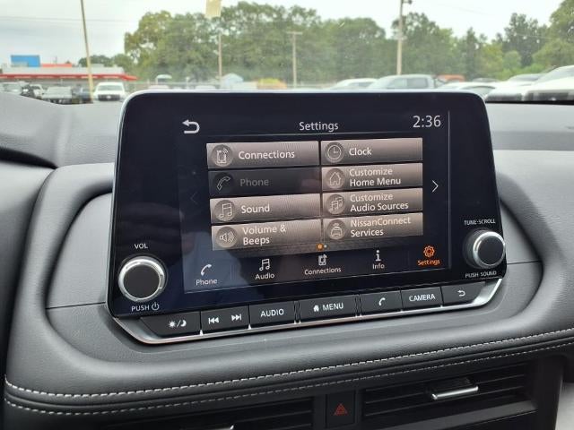 - Radio: AM/FM NissanConnect -inc: 6 speakers plus 2 tweeters, Apple CarPlay, Android Auto, 8" color touch screen display, Bluetooth®, 2 front USB type-C, Wi-Fi hotspot and NissanConnect Services powered by SiriusXM